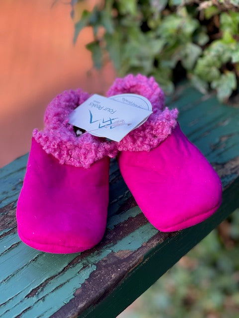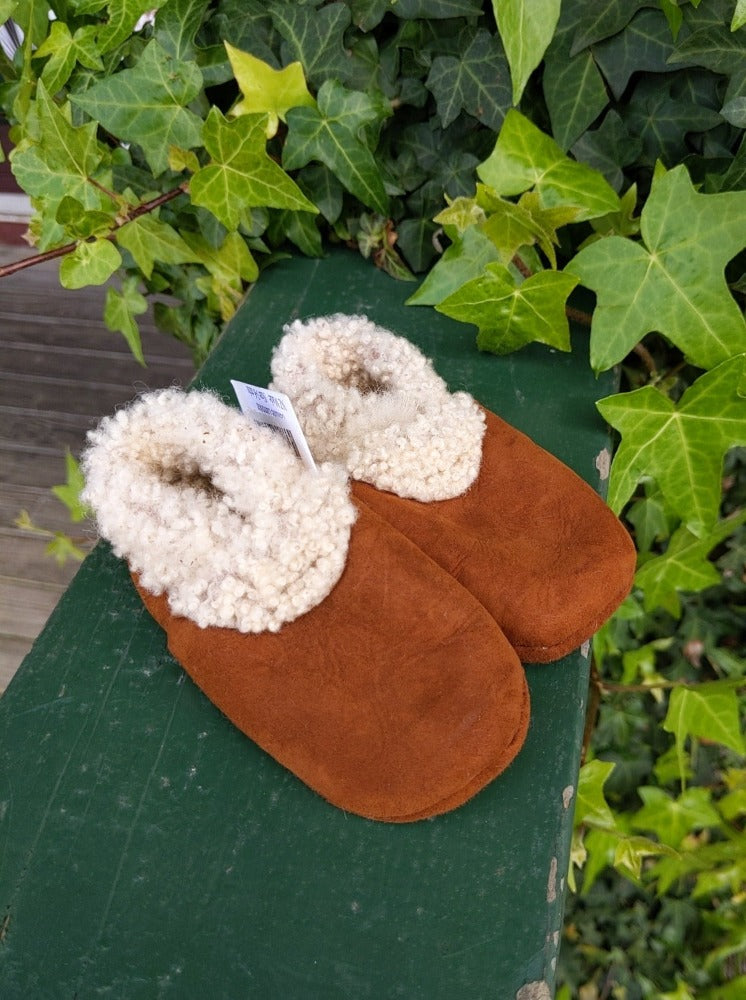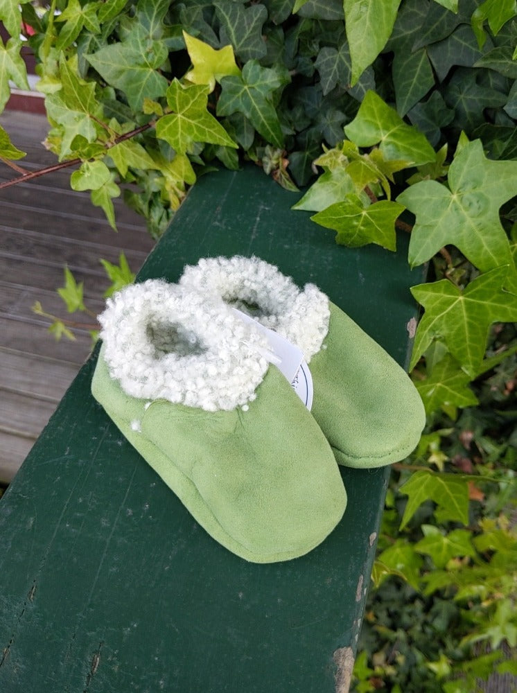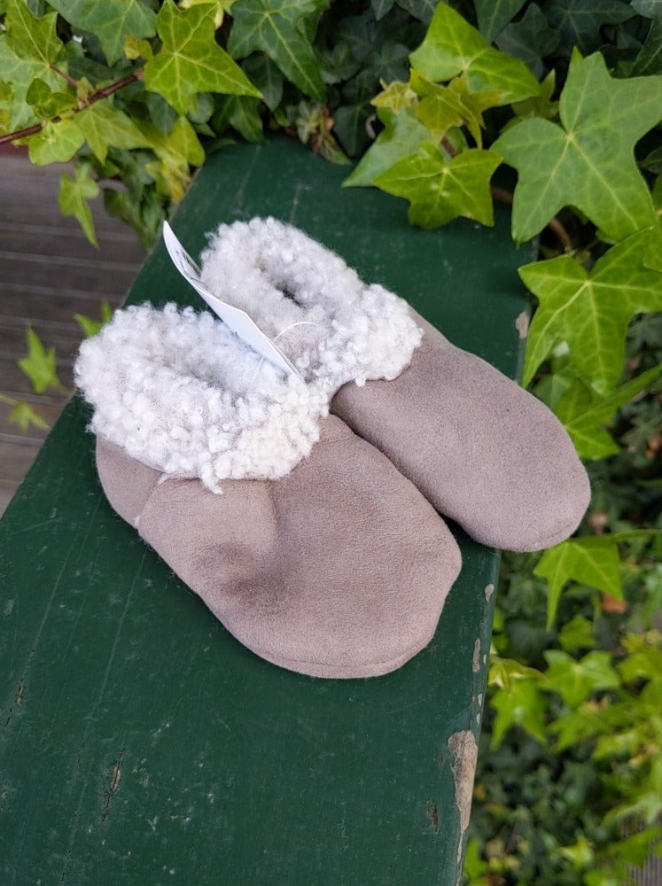 Lambskin Booties will keep your baby or toddlers toes really toasty. The lambskin has the softest curliest fleece on the inside for the most comfort on little feet and the elastic closure makes sure they stay on.