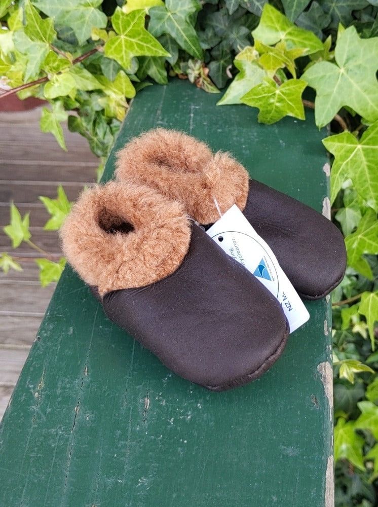 Lambskin Booties will keep your baby or toddlers toes really toasty. The lambskin has the softest curliest fleece on the inside for the most comfort on little feet and the elastic closure makes sure they stay on.