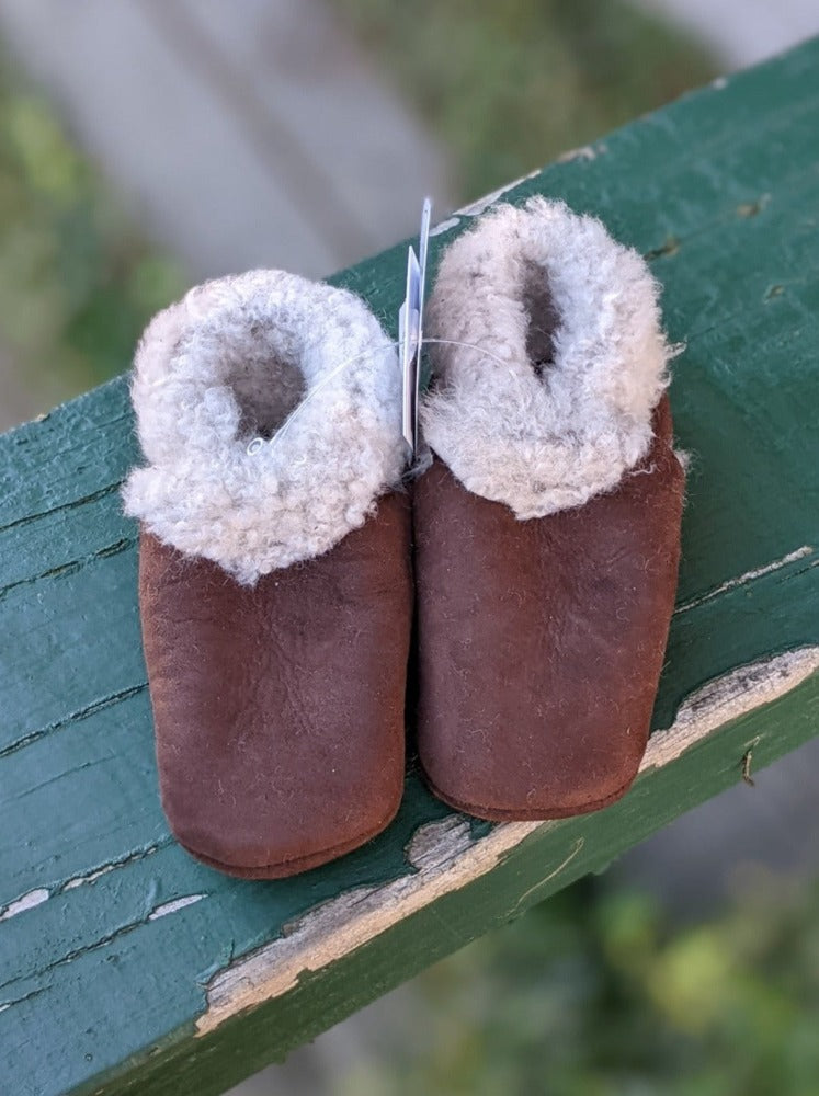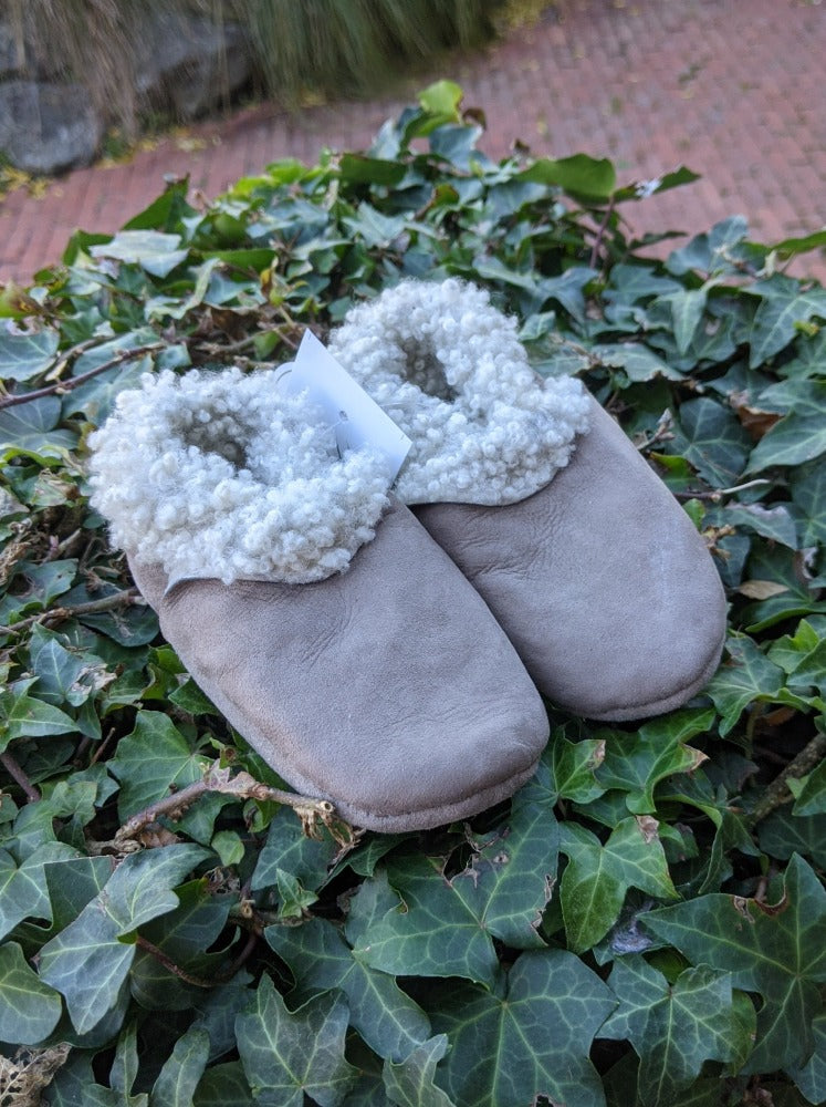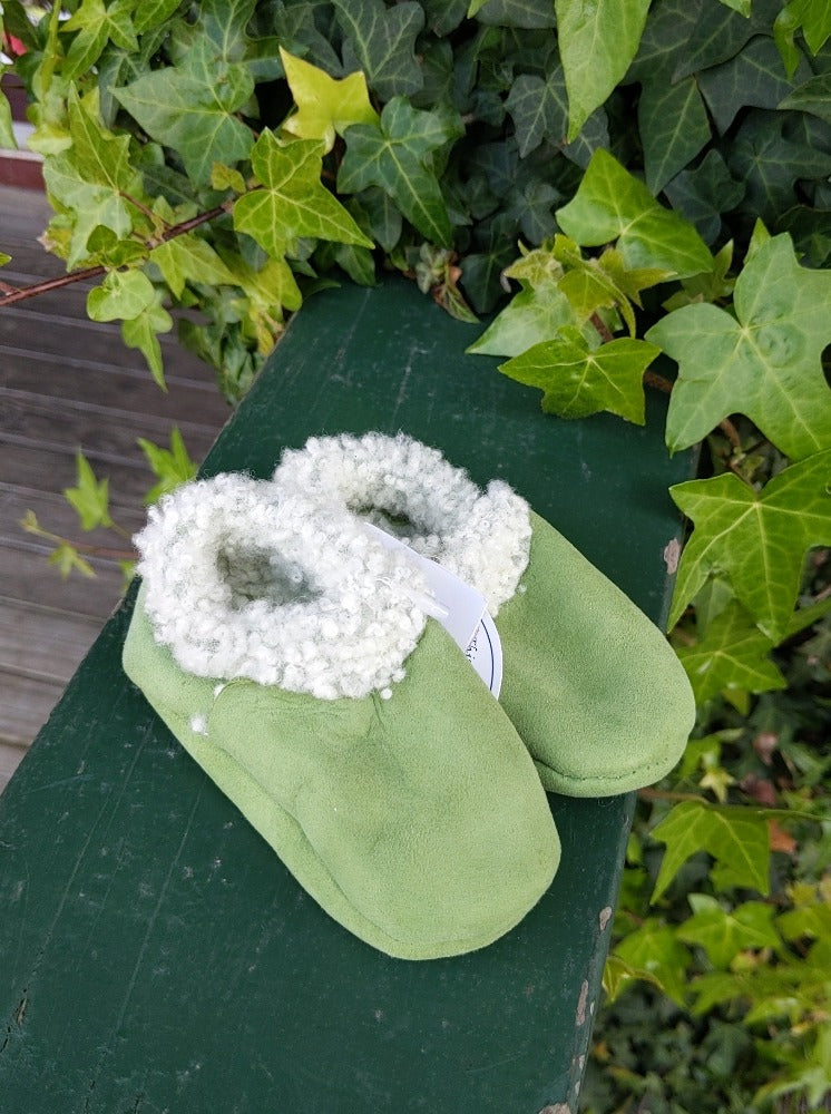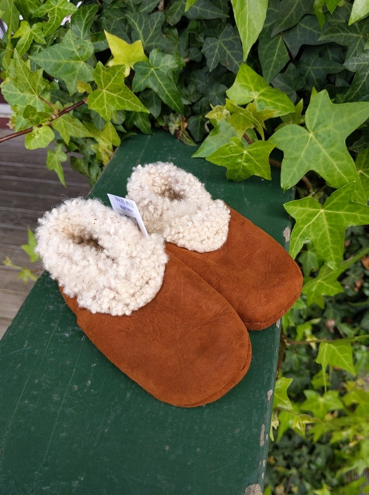 Lambskin Booties will keep your baby or toddlers toes really toasty. The lambskin has the softest curliest fleece on the inside for the most comfort on little feet and the elastic closure makes sure they stay on.