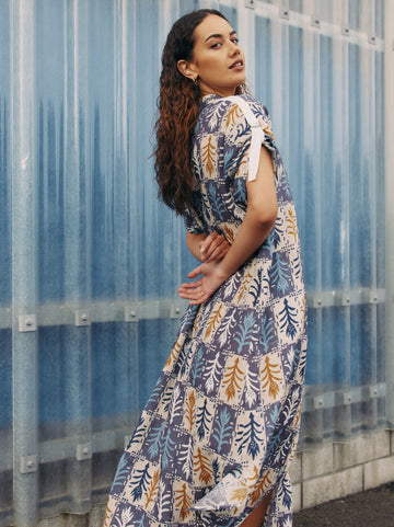 The Quartet Shirt Dress from Madly Sweetly is a button-through dress with a rounded hem and side splits, with under bust gathering for soft fullness. Featuring contrast overarm tape and D-rings for adjustable, grown on sleeves.