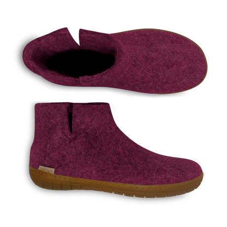 Glerups NZ Felted Wool Boot with Natural Rubber Sole - Cranberry