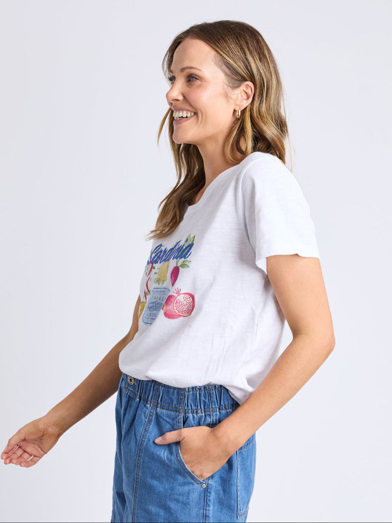 The Alfresco Tee from Elm features an exclusive Elm Design graphic, the Alfresco Tee is a classic block shape cut with a round crew neckline and made from 100% cotton.