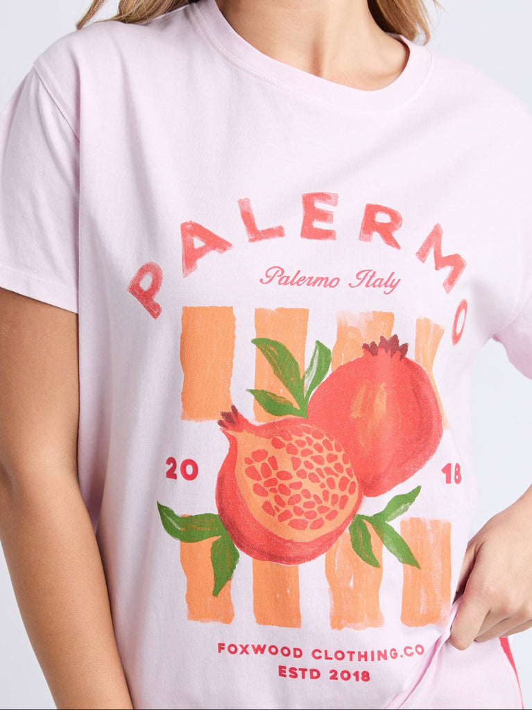 Add a fresh pop of colour with the Palermo Tee. Made from soft cotton, it features an exclusive Foxwood front print with a fun fruit-inspired design. The relaxed fit and classic round neckline make it an easy go-to for warm days and casual styling.