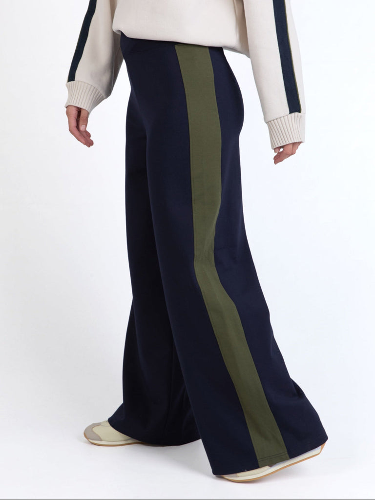 Featuring an elastic waist and relaxed wide-leg fit, these pants are designed for ultimate comfort. The side panel detail with a contrasting panel down the side adds a modern touch, making them perfect for both lounging and on-the-go chic.