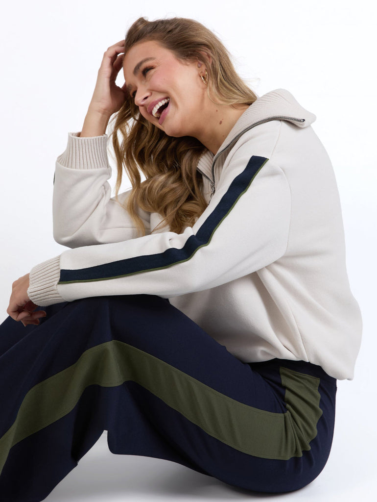 Complete the outfit with the Knit Collar Crew in Bone.