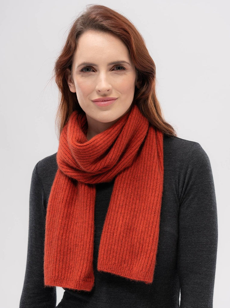 This luxurious fine rib scarf will keep you cosy and warm on the coldest of winter days. The classic textured rib structure of this scarf appeals to men and women. Made in New Zealand by Merinomink.