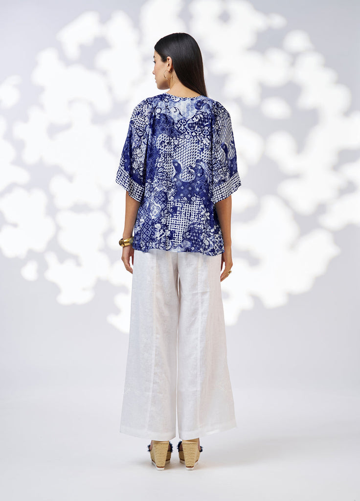 The Isla Blouse from Loobie's Story is a floaty, printed blouse with a flattering V-neckline and shirred raglan sleeve shoulder detailing. Featuring a contrast sleeve hem panel to add interest. Lined through body.